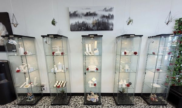We carry many beautiful options in solid gold and implant grade titanium. Any time you purchase jewelry with us, we install for free!